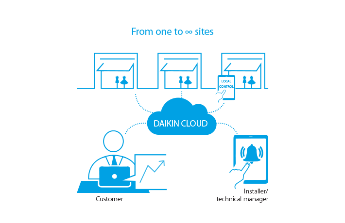 تحكم بموقع واحد إلى ∞ مواقع باستخدام خدمة السحابة في Daikin.